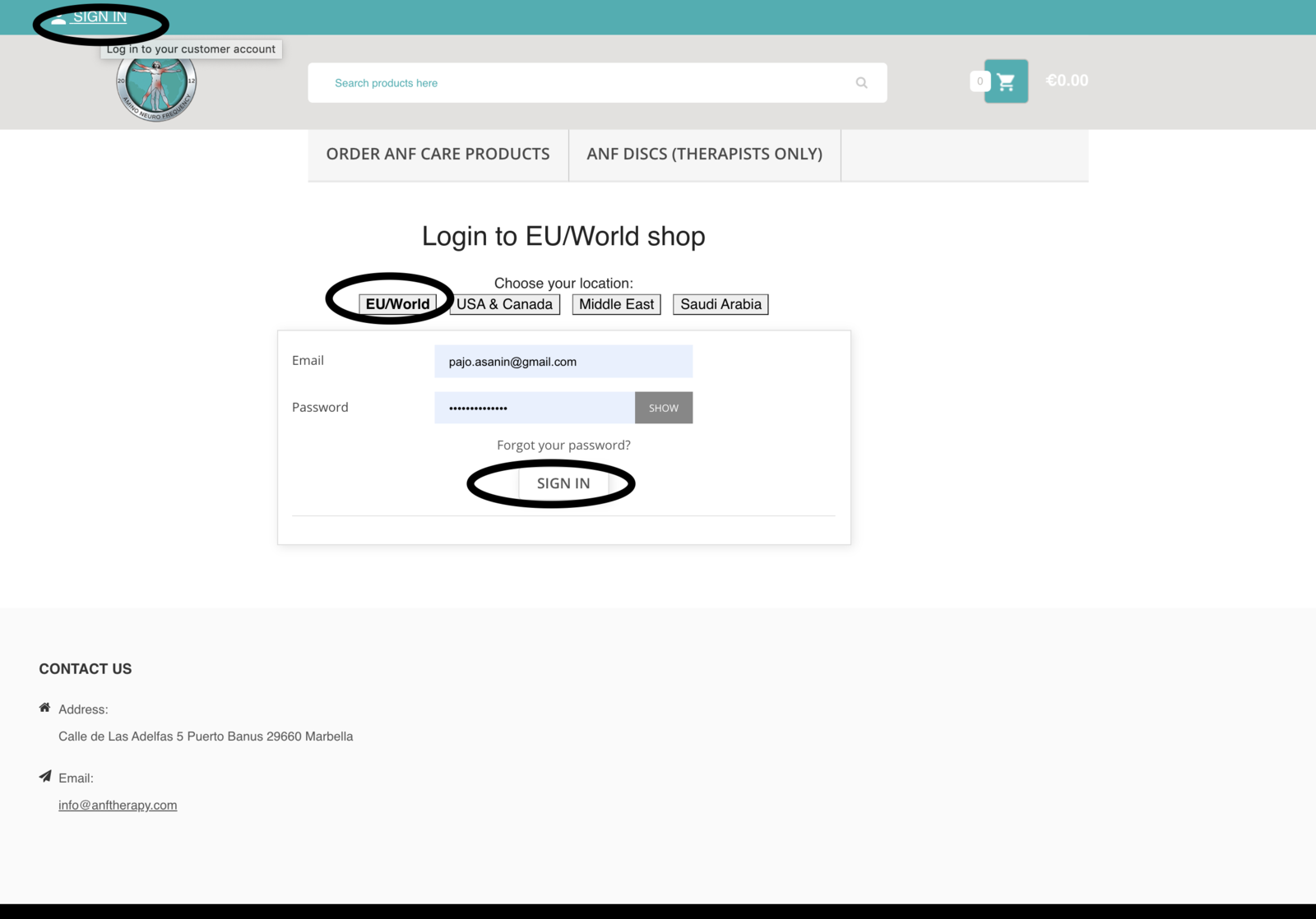 You Sign in to the webshop via the following link (with the same username and password, you gave us when you filled web form)